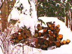 ・冬を暖かく過ごすためには薪が欠かせない。だから来冬のために暮れに倒木を探して運んできた。しかし、雪に埋もれてしまったから、薪割りは春まで待たなければならない。倒木を探し、車に積んで運んできて、切って、割って、干す。その労力のご褒美が真っ赤な炎と暖かさ。がんがん焚くのではなく、酸欠状態にしてとろとろと燃やす。1本の薪が真っ赤な炭になって、ゆっくりと時間をかけて真っ白な灰になる。まるで積もったばかりの雪のようで、やっぱりじっと見とれてしまう。