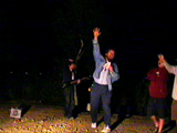 ・西湖に着いたのは4時過ぎ。全体会をして、夕食。そして7時からキャンプ・ファイヤー。1年生にはゼミ単位で仮装してジェンカを踊るという課題をだしておいた。しらけて何もやってこないのではという心配があって、新聞紙、段ボール、パンストなどを用意したが、予想に反して、仮装はなかなかのものだった。で、大きく燃え上がる火の勢いもあって、キャンプ・ファイヤーは最初から盛り上がった。アー、これなら大丈夫。ほっとした気がした。