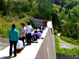 ・翌日は8時に朝食をとって9時からはいくつか用意したミニ講義や授業。僕は「西湖散策」を担当したが、希望者が多すぎて、半分はバスで「野鳥の森公園」に送り出す。で、残った学生を連れて、ちょっとだけ山登り。宿舎の北側には高い山が迫っていて、時折山崩れが起こる。それを防ぐ大きなダムまでが一応の予定で、時間にしたら30分ほどだった。すぐに弱音を吐く学生もいたが着いたらまだ物足りなそうな雰囲気で、それならちょっと冒険をと川原にくだって巨岩がごろごろするところをダムの中まで歩く。水は全然流れていないが足場を気をつけなければ滑ってしまう。「ワー、こわ」とか「キャー」とかいう学生もいるが楽しそうで、次には堤防の上まで登る。空は真っ青、山は新緑、眼下には西湖、遠くに富士山。一人前の山歩きをした気がして満足そうな顔。じゃー、これで下に降りましょう。