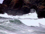 ・宿は陶芸家が体験者用にはじめたという民宿。佐渡には無名異焼という赤土を使った焼き物があるが、宿の主人は自分で佐渡の土を探して、自分で薪窯を作って、自分の作風を見つけだしたというこだわりの人だった。古い民家を移築して作った宿、大木を自分で切って作ったテーブル、あるいは巨石を積み上げた蟷螂など、なかなか面白いところだった。・小木と直江津のあいだには航路がある。港には観光用のたらい船もあったから、ぼくもカヤックをと思ったのだが、たらいにのって女性たちが漁をするという場所は、ご覧のとおりの荒海。断崖の上から恨めしそうに眺めて、あきらめることにした。地元の人に、やっぱり日本海は荒々しいですね、というと、台風の影響だからで、いつもは凪状態だという応えがかえってきた。そう聞くとますます残念だが、しかし、打ち寄せる波の景色は、それはそれで見ごたえがあった。