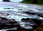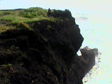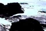 ・台風が来ているから当然、天気は悪い。しかし時折、陽が差したりもする。波もそれほどでもないから、車に積んできたカヤックで海での初乗りができるかもしれない。そんなことを期待しながらフェリーでの2時間半をぼんやりと過ごした。・せっかく来たのだからと、まずは北側の山をめざして車を走らせ、金山を通り過ぎて、後は海岸沿いに南西の端の小木までひとっ走り。所々に露出している山肌は、いかにも金銀その他がとれそうな、さまざまな色の地層をしている。 |