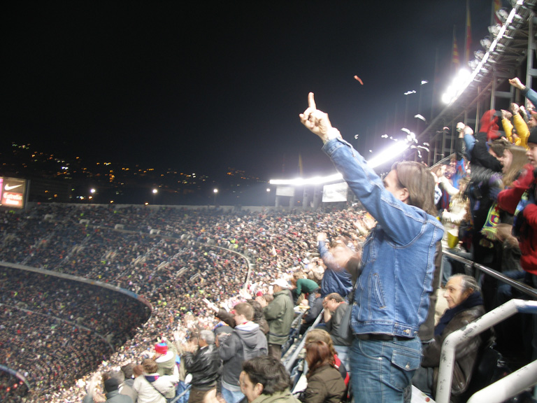 ・試合はロナウジーニョのフリーキックやアシストで5対1で勝った。相手はセビリヤのベティス、中堅どころでけっして弱いチームではなかったのだが、最初から最後まで一方的な試合だった。当然ファンは大喜びで、周囲の人たちは歓声を上げ、拍手をし、歌を歌い、ウェーブをした。ぼくには試合以上にこちらのほうが楽しかった。サッカーをよく知っている、一番熱狂的な人たちが集まっているところだったようだ。とにかく日にちが変わろうという時間なのにみんな元気がいい。シエスタでしっかり昼寝をしているのだろうか。ぼくも思わず一緒になって、立ち上がったり、拍手喝采をしたり……。