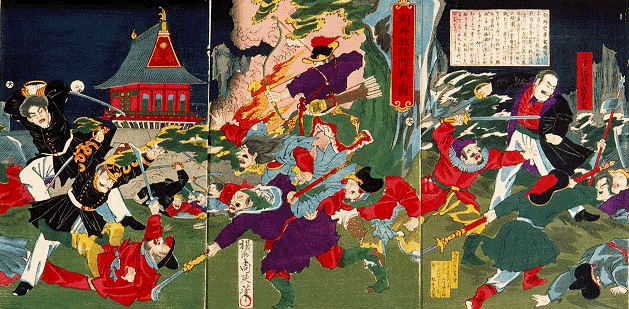 朝鮮激徒防戦ノ図 橋本周延筆 山村鑛次郎 明15