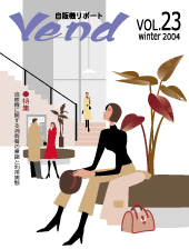 | 自販機リポート Vend VOL.23 ● 内容 新風景 ネットワークモバイルロッカー「クロスキューブ」(東京・新宿) 特集 消費者の意識と利用実態 出席者 丸谷雄一郎 愛知大学 経営学部助教授 久保田恭子(社)消費者関連専門家会議ACAP常任理事 酒井 均 (株)電通消費者研究センター研究顧問 視点 生活者の視点からのものづくり 酒類の適正な販売管理に向けて ニュース&トピックス ・新500円硬貨の偽貨が初めて見つかる ・ユニバーサルデザインの券売機の開発が相次ぐ ・第13回自販機ロケーション大賞決まる ・新千円札の印刷が10月24日に始まる ・国土交通省、景観づくりの基本法制定へ ・ペットボトルの回収率が世界最高水準に インタビュー 電子マネー時代の到来に向けて ICカードの進展と自販機 植田 稔 日本ICカード推進協議会事務局長 施設訪問 自動支払機でスピード会計 「NTT東日本関東病院」 最前線 地震から生命と文化を守るため「耐震」から「免震」へ Q&A 自販機にかかわる表示 データファイルズ 2002年自販機普及台数及び年間自販金額の構成比 年別普及台数及び年間自販金額推移 清涼飲料の生産量と生産金額の推移 装丁:A4変形 24ページ |